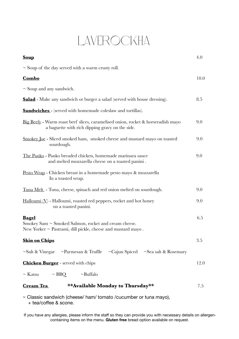 Laverockha Menu