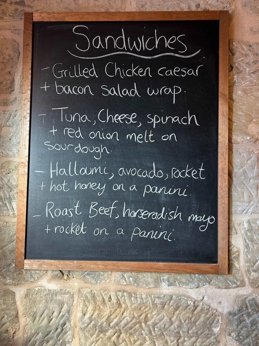 Overall, the structure is organized around typical café offerings covering breakfast, sandwiches, main dishes, and beverages, allowing visitors to select from quick bites to more filling meals throughout the day.
